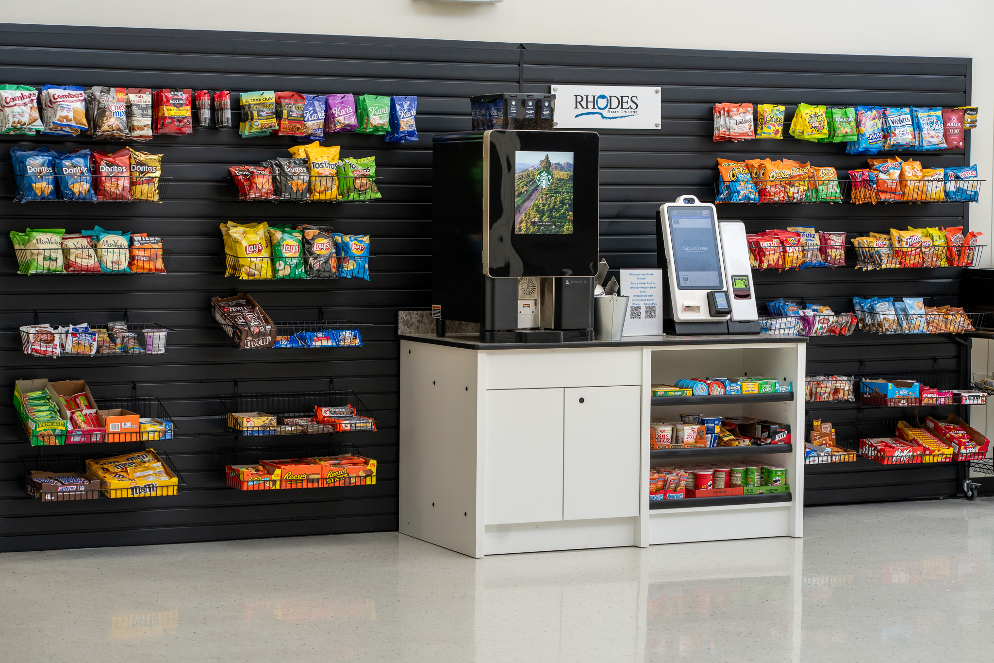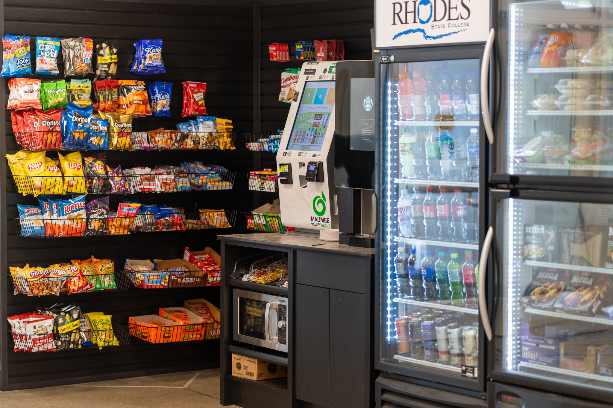 Rhodes State College is proud to partner with Maumee Valley Group to offer a Fresh Market at both the Borra Center and on the Main Campus in the JJC Atrium. The Fresh Markets provide fresh foods like sandwiches and salads, frozen foods with access to a microwave, cold beverages, snacks, and Starbucks coffees. Self-checkout with payment options for our Fresh Markets will include cash, credit/debit cards, Apple Pay, and a Fresh Market payment card or smartphone app. Fresh Market payment cards will work at either location (Main Campus or Borra Center). Vending machines are also available in all other buildings.